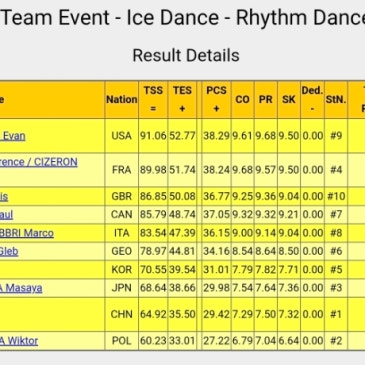 <�팀 이벤트 아댄 리듬댄스 결과> 2026 밀라노 코르티나 동계올림픽 팀 이벤트, 아댄 리듬댄스와 여싱과 남싱 쇼트 결과입니다. #2526시즌 #밀라노코르티나2026 #팀이벤트 #아댄 #리듬댄스 #여싱 #페어 #쇼트 #결과