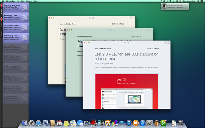 RSS Notifier가 RSS 리더로서 가지는 가장 큰 특징은 별도의 창을 띄울 필요없이 사이드바를 통해 새로운 뉴스피드를 바로 확인할 수 있다는 것입니다. 또한, 웹 기반의 RSS 구독 사이트 Feedly 와 연동해서 쓸 수 있다는 것도 장점입니다. ▼