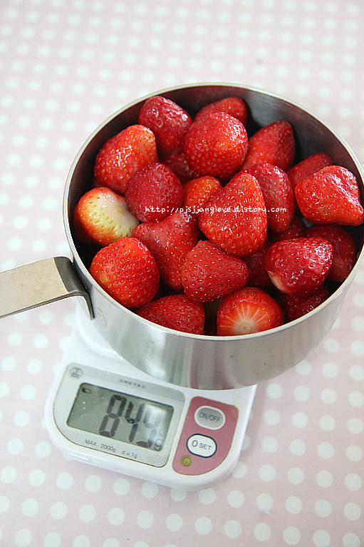 얼른 딸기잼 하려고 계량하는 중...ㅎㅎㅎ