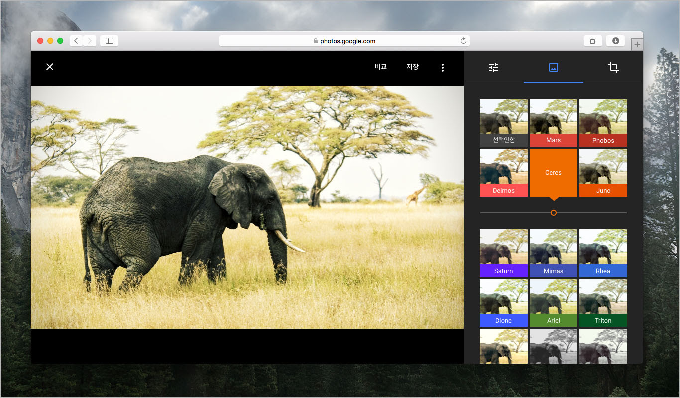 OS X용 Google 포토 백업 툴과 웹 브라우저를 통한 사진 편집