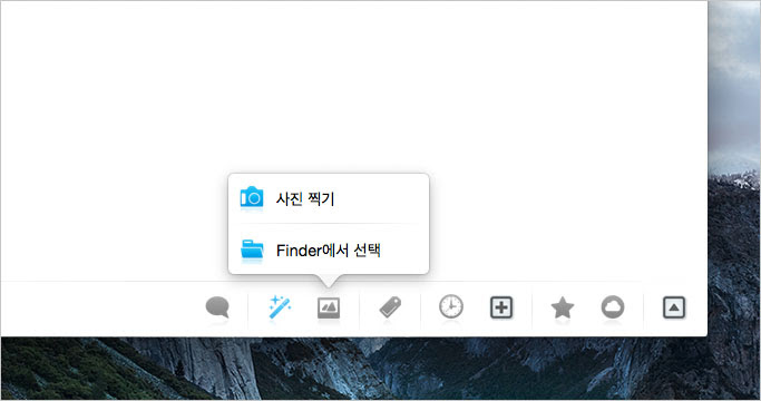 텍스트 영역 우측 하단은 녹음 파일에 첨부할 여러가지 항목을 선택할 수 있는 난으로 구성되어 있습니다. 좌측에서 순서대로 메모 작성, 사진 첨부, 태그, 타임스탬프, 즐겨찾기, 아이클라우드로 업로드 기능입니다. ▼