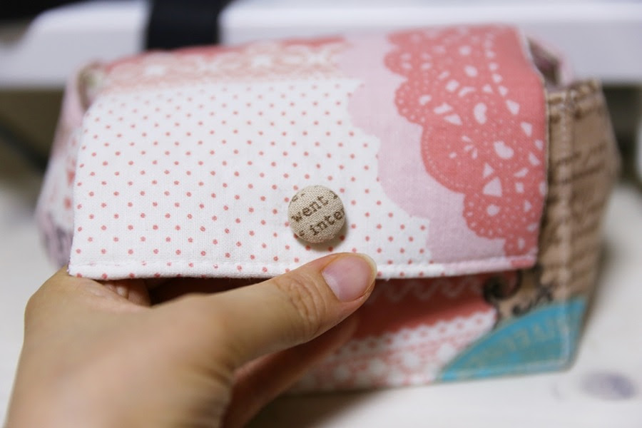 뚜껑 안쪽과 겉감에 자석 스냅단추를 달아줬어요~
