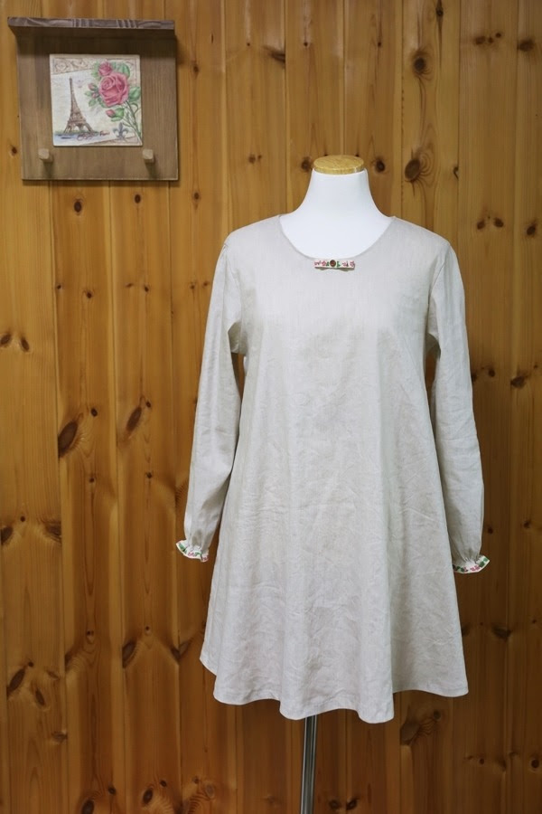 다이마루 원단은 아직 좀 더워서 린넨코튼 원단으로 플레어 원피스를 만들었어요~