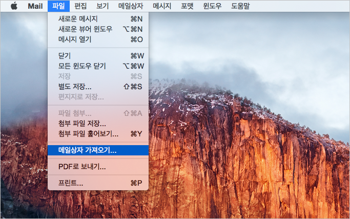 나중에 메일상자를 복원해야 할 일이 생기면 메일 앱의 '파일' 메뉴에서 '메일상자 가져오기...'를 클릭한 뒤 디스크나 외장하드에 저장해 놓은 메일상자를 선택하면 됩니다. ▼