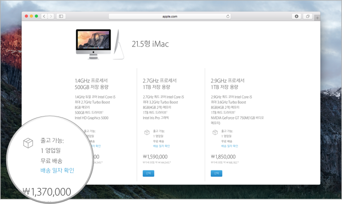 4K 디스플레이를 탑재한 21.5인치 신형 아이맥이 다음주 화요일에 출시된다는 루머가 나온 가운데, 아이맥 출고 기간이 늘어나는 현상이 온라인 애플 스토어에서 목격되고 있습니다. 애플 온라인 스토어에서 제품 배송 기간이 늘어나는 현상은 현행 모델의 단종과 더불어 신제품 출시 정황을 나타내는 단서로 인식되고 있습니다.