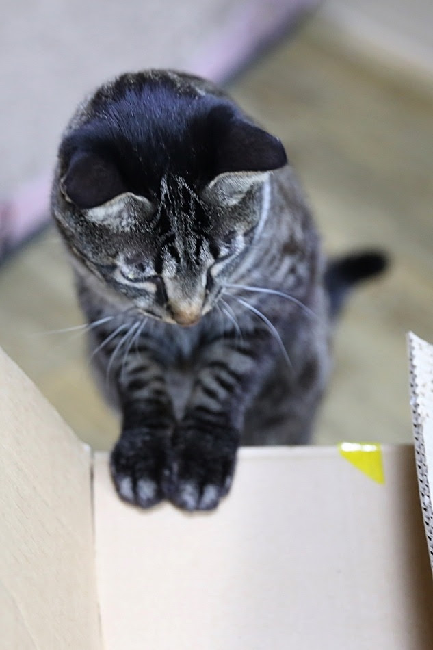 다행히 금방 고치고 집에와서 박스에서 꺼냈는데- 두 냥이가 박스를 향해 달려왔어요~