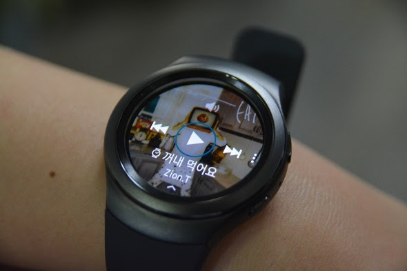 사실 크게 아쉬운 점은 없는데요. 다만 기어S2에 저장된 파일로 음악을 실행할 경우 라이브러리 및 가수, 앨범 등 선택이 가능한데 스마트폰에 있는 음악플레이어를 컨트롤 하는 기능만을 사용할 경우 불가능합니다. 오직 이전/다음/재생/정지만 가능합니다.