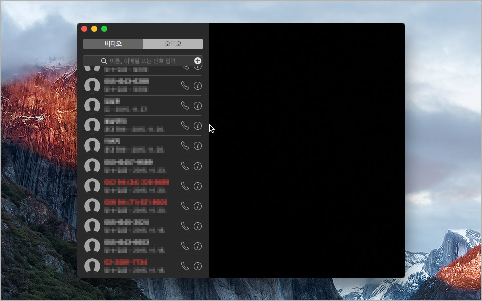 페이스타임 사이드바... 그러니까 통화 내역이 표시되는 곳을 우클릭하면
