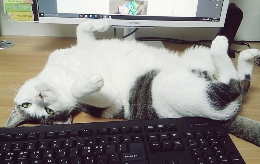 책상 위에서 방해하며 자는 가을이~ㅋ