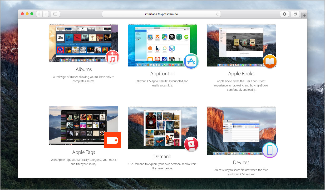 "애플의 아이튠즈는 음악, 책, 앱, 비디오 구매, 동기화 등등 '모든 사람을 위한 모든 것이 되려는 시도로 악명이 높습니다. 이러한 아이튠즈를 작고, 집중적이고, 단일목적의 앱으로 나눈다면 더 나은 제품이 되지 않을까요? 저희 학생들의 프로젝트에서 답을 찾아보시죠!"
