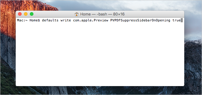 defaults write com.apple.Preview PVPDFSuppressSidebarOnOpening true