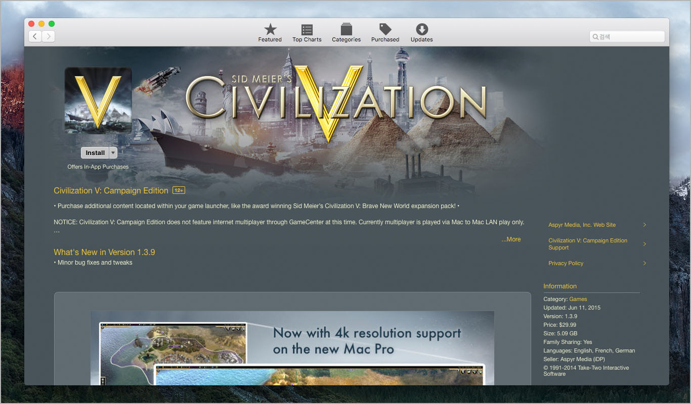 아스파이어는 윈도 PC용으로 개발된 게임 타이틀을 맥용으로 포팅해서 유통하는 회사로, 문명 시리즈를 비롯해 콜드오브듀티, 보더랜드, 스타워즈, 심시티 등의 히트작을 맥 앱스토어와 스팀에서 판매하고 있습니다. 업체는 만약 2월 13일 이후 맥 앱스토어 게임이 실행되지 않으면, 맥에 설치된 게임을 먼저 삭제한 뒤 맥 앱스토어에서 새 인증서가 포함된 게임을 다시 내려받으라고 당부했습니다.