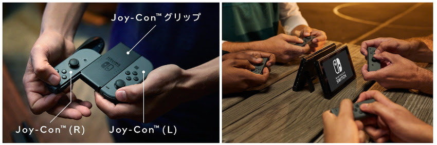 디스플레이로 된 본체를 스위치 독에 끼우면 닌텐도 위(Wii)나 PS 처럼 콘솔형 게임기가 되며 다시 디스플레이를 분리한 후 양 옆에 조이콘(Joy-Con)을 끼워주면 닌텐도 DS나 PS Vita 처럼 휴대용 게임기로 사용할 수 있습니다.
