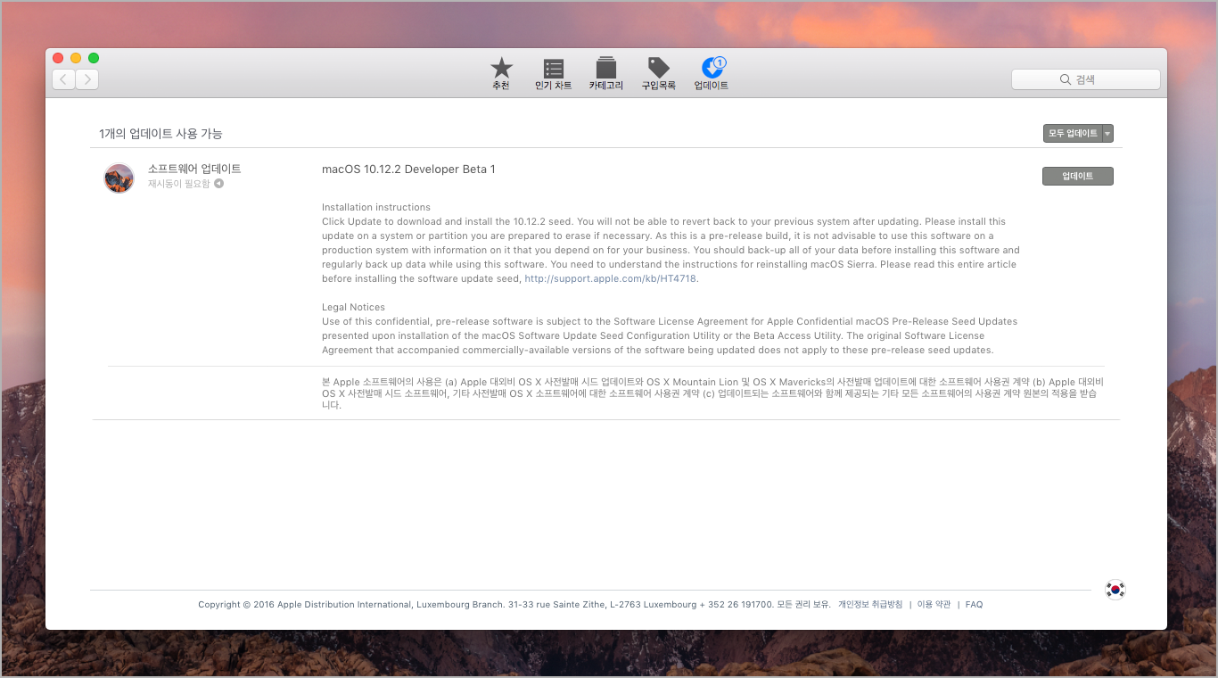 애플이 오늘 macOS 시에라 10.12.2 첫 베타 버전을 공개했습니다.