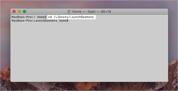 1. 터미널에 아래 경로를 입력해서 데몬이 위치한 디렉터리로 이동합니다. ▼