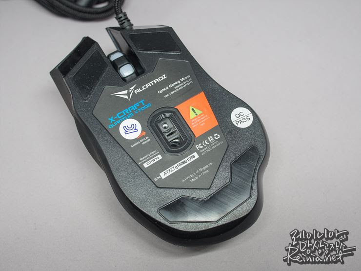 바닥에는 센서가 있고 QC가 끝났다는 스티커가 붙어있습니다. 잘 미끄러지라는 패드가 붙어있는데요. 마우스를 쓰다 보면 이 패드가 닳거나 뜯어지는 일이 종종 있어서 이걸 추가 구성품으로 줬으면 어떨까 싶기도 합니다.