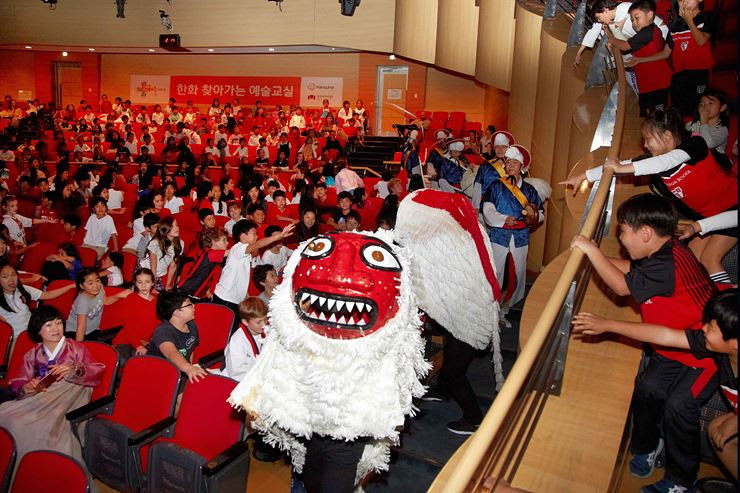 광개토 사물놀이 예술단이 진행한 공연에는 서울외국인학교 학생 700여 명이 참관했다고 합니다. 사진으로 봐도 흥미진진한 공연이었다는 걸 짐작할 수 있네요.