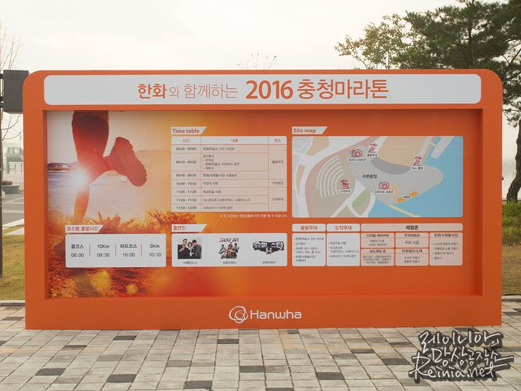 한화와 함께하는 2016 충청마라톤은 대전일보사가 주최하고 한화그룹이 후원하는 마라톤 행사입니다. 5km 코스부터 10km, 하프, 풀 코스까지 다양한 코스로 도는 제법 큰 마라톤 대회인데요.