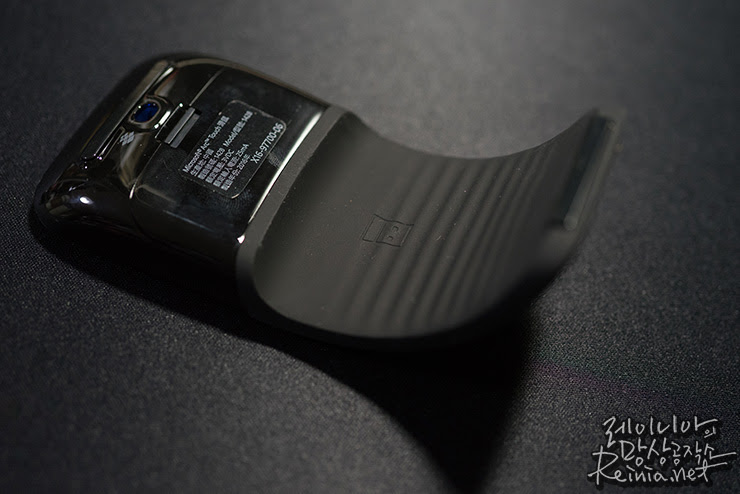 아크 마우스1과 마찬가지로 바닥에 배터리를 넣을 수 있는 공간이 있습니다. 혹시 모르니 또 바코드 아래 있는 제품 시리얼을 따로 정리해뒀습니다. 그럴 일은 없겠지만, 또 문제가 생기면 AS 받아야 하니까요.