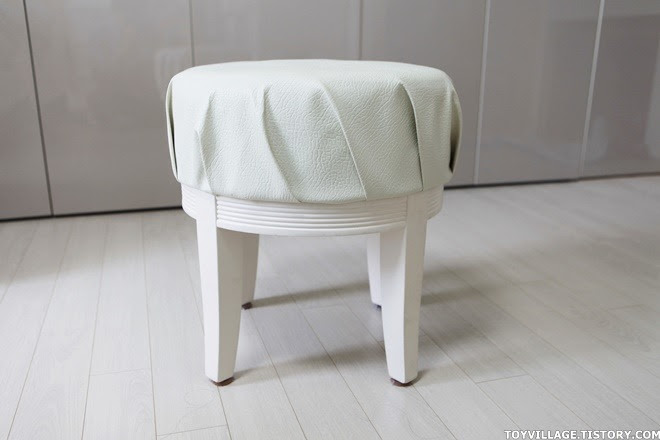 4년전쯤 집에 들여놓았던 화이트톤의 블링블링한 화장대. 커다란 거울과 화장대, 그리고 둥그런 스툴 의자로 구성된 세트 상품이었다. 화장대 자체는 원목에 페인트된 소재로 되어있는지라 시간이 지나도 크게 변함없이 그 아름다운 자태(?)를 유지해주셨는데... 스툴의 깔고 앉는 시트 부분은 인조가죽(레자) 소재로 되어있어 사실 구입 무렵에도 약간 불안불안하긴 했다. 물론 화장대 스툴이 소파처럼 늘상 걸터앉는 곳이 아닌지라 크게 문제 없을꺼라 생각했건만... 시간이 지날수록 역시 레자는 레자일뿐이란 결론을 내릴수밖에 없었다.ㅠㅠ
