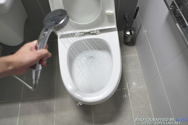 다음으론 샤워기를 강으로 틀어놓고 뜨거운 물을 변기 안으로 넣어주는 방법인데... 특히 휴지같은게 뭉쳐서 안을 막고 있을때 유용하게 쓰이는 방법이다. 하지만... 이방법까지 썻는데도 안된다면...