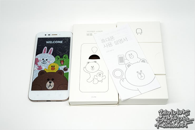 설명서에는 기종 이름이 적혀있네요. ZTE-K813 모델입니다. 여기에 라인프렌즈 캐릭터 디자인을 더한 일종의 커스터마이징 스마트폰이 이번 라인프렌즈 스마트폰이 되겠습니다.