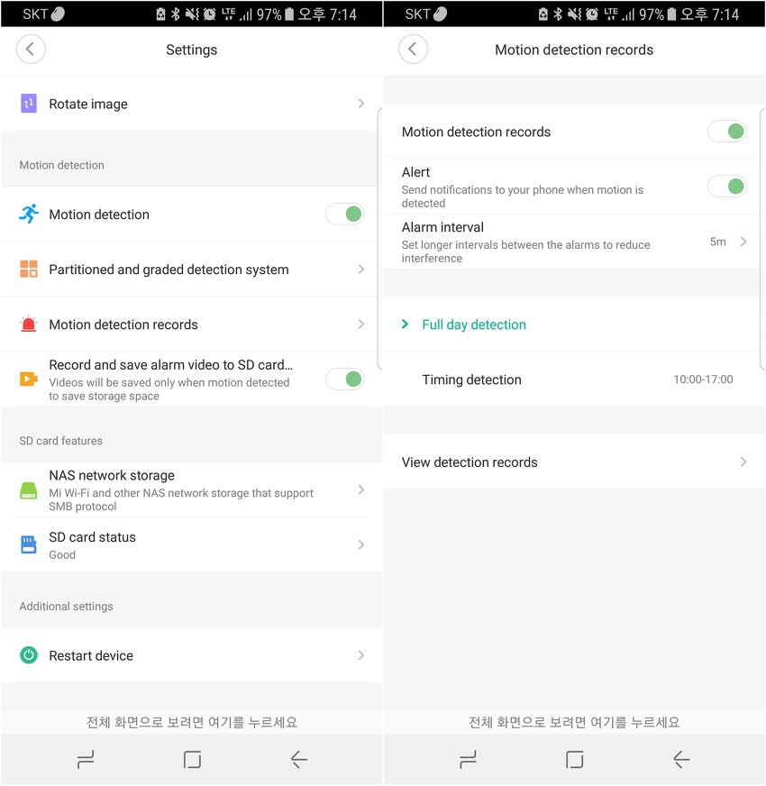 센서 민감도도 설정할 수 있으며 동작감지시 스마트폰으로 알람을 보낼 수도 있다. 말 그대로 CCTV 역할을 충실해 해준다. 마이크로SD 뿐만 아니라 NAS 사용자라면 NAS에 해당 영상을 저장할 수 있는 기능도 함께 제공한다.