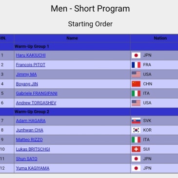 2526시즌 NHK 트로피, 각 종목 쇼트 스타팅오더
