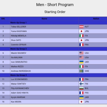2526 주그프 3차대회, 각 종목 쇼트 스타팅오더