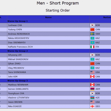 2526시즌 주그프 6차 & 데니스 텐 메모리얼, 각 종목 쇼트 스타팅오더