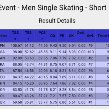 2026 밀라노 코르티나 동계올림픽, 팀 이벤트 남싱 쇼트 & 아댄 프리댄스 결과