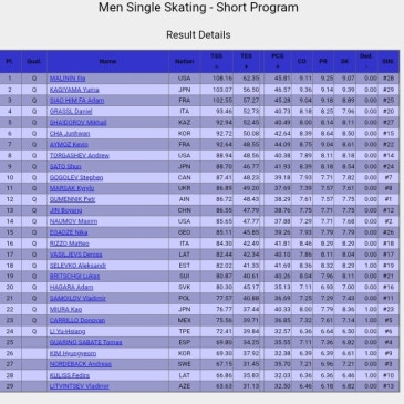 2026 밀라노 코르티나 동계올림픽, 남싱 쇼트 결과