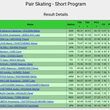 2026 밀라노 코르티나 동계올림픽, 페어 쇼트 결과