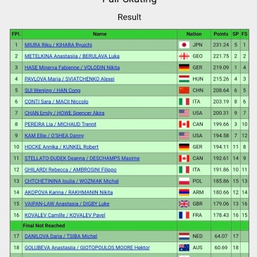 <�페어 결과> <�페어 프리 결과> 2026 밀라노 코르티나 동계올림픽, 페어 결과입니다. #2526시즌 #밀라노코르티나2026 #페어 #프리 #결과