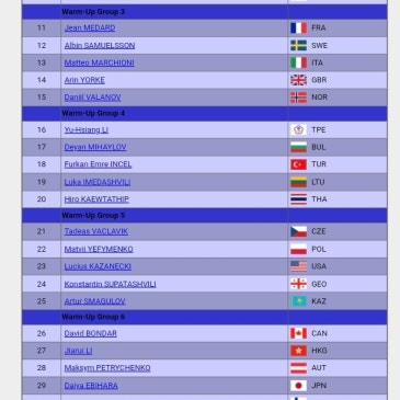 2026 피겨 주니어 세계선수권대회, 각 종목 쇼트 스타팅오더
